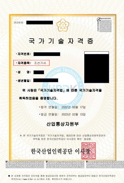 2022년 12월 31일까지 조선기사를 보유하고 있었다면, 이후로도 조선기사 자격을 그대로 인정받을 수 있으니 걱정 마세요!
